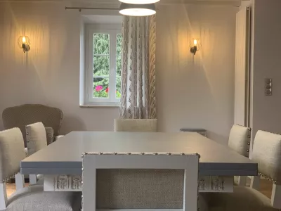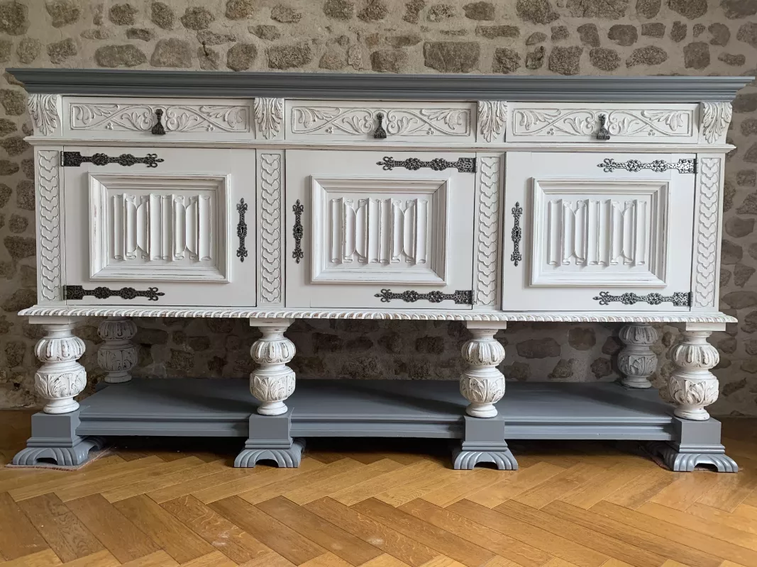 Dans cette maison familiale située à la campagne, le propriétaire souhaitait redonner un coup de neuf à sa pièce de vie en la rénovant et en relookant le mobilier familial qu'il voulait conserver.