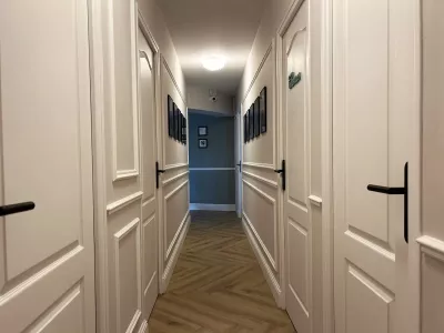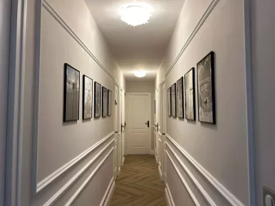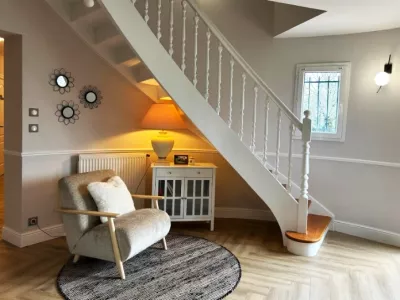 Dans ce pavillon individuel, les clients souhaitent rénover leur grand hall d'entrée et le couloir dans la continuité afin d'apporter d'avantage de luminosité, tout en créant une decoration chaleureuse.